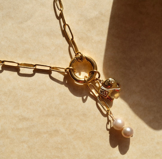 Double chain light caramel freshwater pearl charm C76