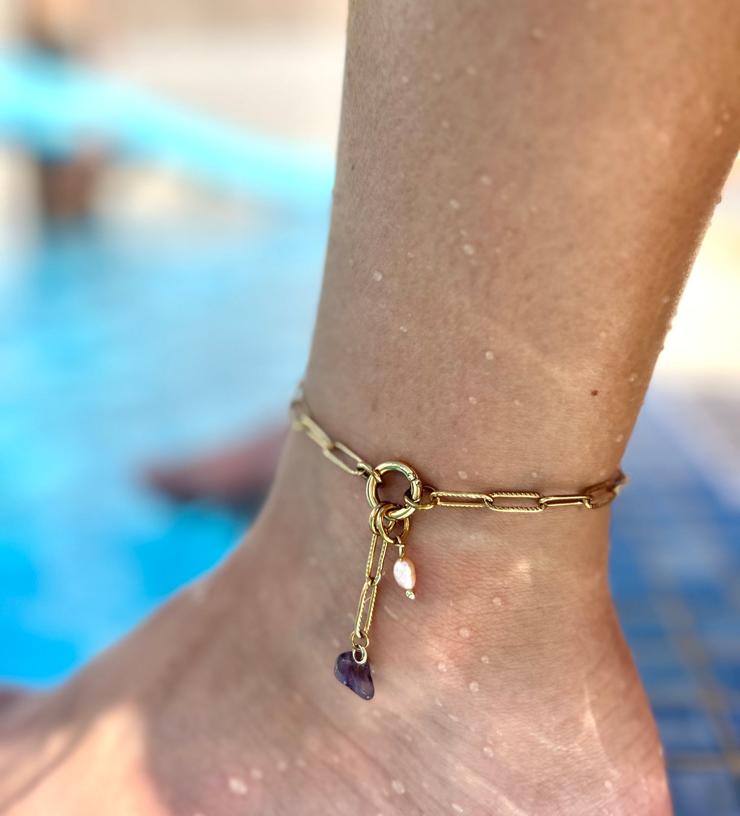 Our paperclip anklet is made of Stainless steel 304. That makes it waterproof - it won't tarnish. You can shower, swim and exercise every day while wearing it.